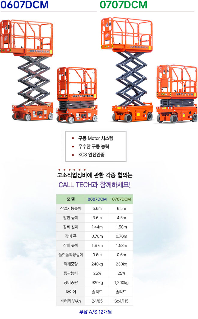 최적의 가격과 품질로 보답하는 CALL TECH 시저고소작업대 소형 시저리프트시노붐 series수동 주행형0707DCM/0807AC1008AC/1012AC1212AC/1412AC1612AC/1614AC 고객센터 TEL02. 2060. 2883 온라인상담문의 소형 시저리프트 HOME > 시저고소작업대 > 소형 시저리프트